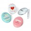 Un espejo ovalado con unas frases en su exterior alegres, el espejo es a doble cara una vez este se abre.